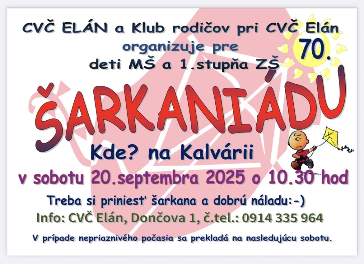 14 . 10 . 2025Dopoludnie s Elánom-“Šarkaniáda” pre 4.roč. ZŠ KlačnoPropozícieVyhodnotenie