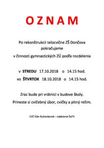 OZNAM – ZÚ gymnastika